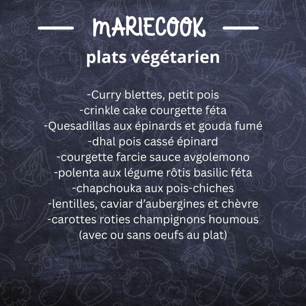 En 2 à 3 heures, je prépare entre 2 et 5 plats maison, adaptés à vos goûts.